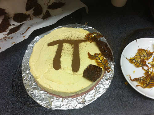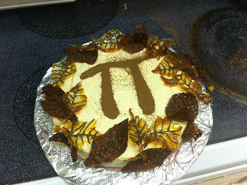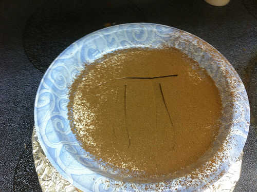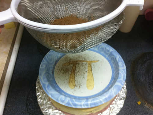 Cortar una plantilla de papel rígido con un cuchillo xacto.  Sostenga la plantilla sobre el postre y cernir sobre algunos cacao en polvo.  Puede utilizar cacao en polvo sin azúcar o una mezcla de chocolate caliente de buena calidad (sin sólidos leche en polvo o jarabe de maíz).  Utilicé un chocolate Azteca picante.  Me gusta a veces complejo.  Retire la plantilla y decorar el postre con las hojas.