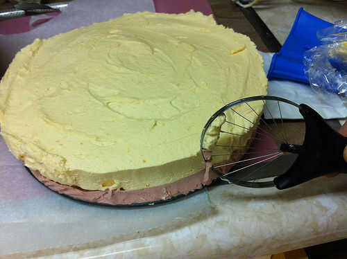 La mousse tenía aristas cuando tiré lejos de la envoltura de plástico.  Yo les raspa con un utensilio para alisar hacia fuera.  Usted puede dejar áspera si quieres.