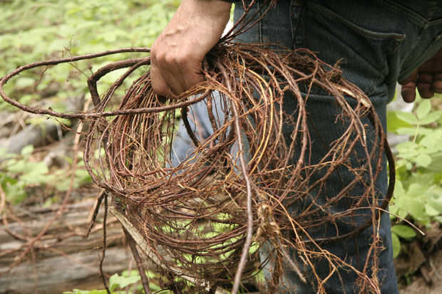 Una raíz larga (o un grupo de raíces) puede ser enrollado en un paquete. Paquetes son fáciles de llevar. Además, un pequeño paquete se puede empapar en un cubo.