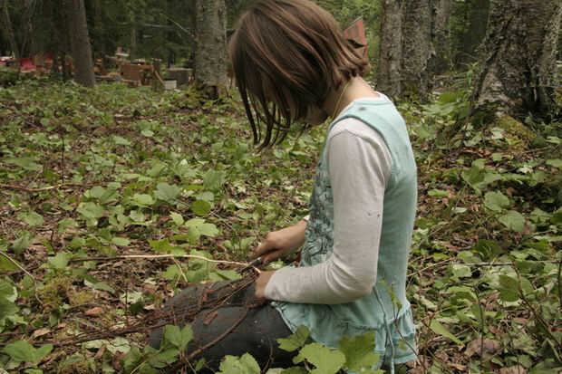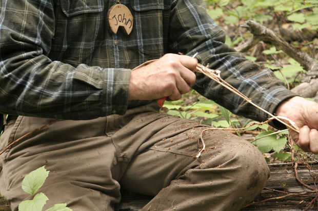 Aunque la corteza se puede raspar con las uñas, prefiero utilizar una clave. Tengo la herramienta como si estuviera cinta que se encrespa. Yo apunte la hoja hacia mi pulgar y tire de la raíz entre mi pulgar y la cuchilla. Me siento más segura de hacerlo con una llave porque soy menos probable hacer yo mismo.