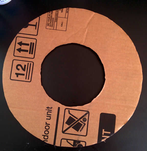 1. Dibujar dos círculos uno dentro de otro sobre el cartón. Dibujado el círculo con el radio de 2.65 "y externa con 5.5".