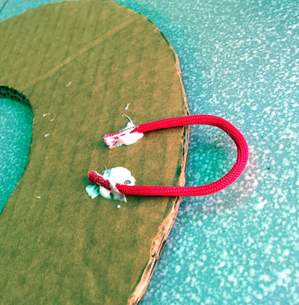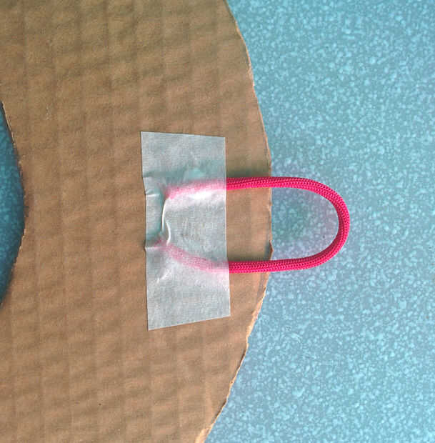 3. Pegar la cuerda paracord en la parte posterior de la cartulina para formar un lazo de suspensión. Deje que se seque.