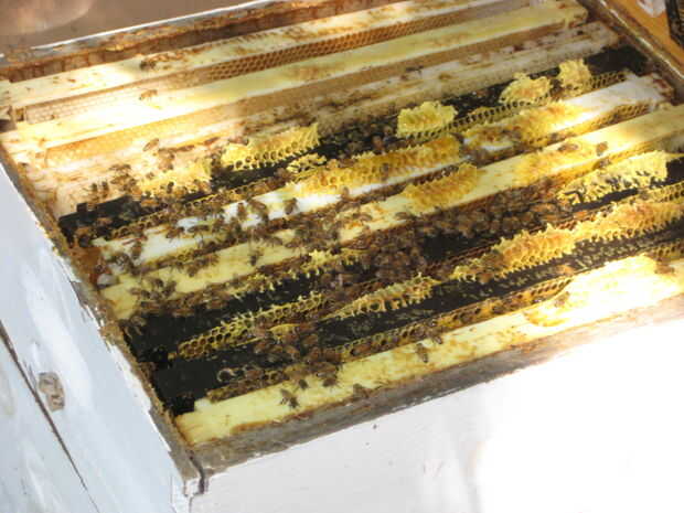 Cada pila es un hervidero. Cada caja se llama a un super. Los supers están llenas de colgar cuadros. Los marcos están llenos de peine.
