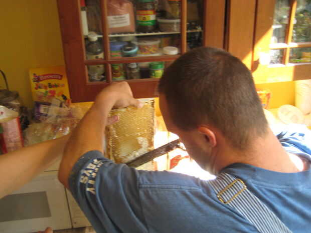una de las mejores cosas de mantener abejas cosecha miel! Cuán dulce! Al menos una vez a finales de verano varios apicultores locales patio reunirán en mi garaje para extraer la miel. Ayudamos a todos cada uno de otros y éste es un momento para compa