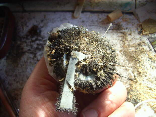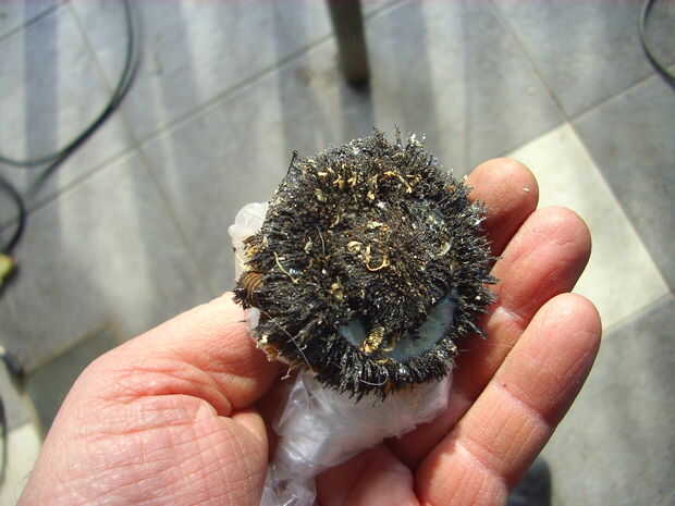 Con el imán escondido dentro de la bolsa de polietileno, todo lo que tienes que hacer es pasar por los lugares donde ves o sospechas que hay limaduras de hierro. La cantidad que se puede recoger en las proximidades de una esmeriladora de banco es sorprendente. Alrededor visegrip hay muchos también y en el piso debajo de la mesa.
