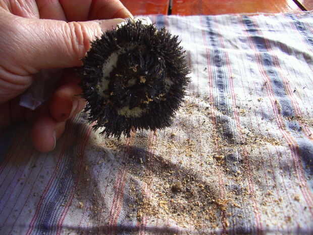 Junto con las limaduras el imán pectorales pequeños trozos de hierro: trocitos de alambre, "pelos" del cepillo de acero, chapitas, etc, etc.. Hay sacarlas. Un escarbadientes ayuda mucho. También pectorales basura no magnética, como pelusa, Earte y similares. Una manera de deshacerse de ellas es escarbar con el escarbadientes las limaduras mientras se sopla. Otra manera es golpear la bolsita contra la mesa, con lo cual caen algunas limaduras pero más nada caerá todo lo no es magnético. Las limaduras se pueden volver a levantar con el imán. Repitiendo este procedimiento varias veces se estudios obtener limaduras prácticamente limpias.