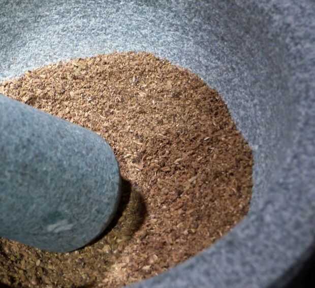 Una segunda molienda de las rejas, una vez seco, hace una diferencia increíble en la obtención de un polvo fino que se puede hacer una pasta. Usé la misma amoladora de la especia, licuadora o mortero que usé antes. Tuve cuidado de no inhalar cualquier nubes de polvo que he creado en este paso.
