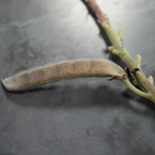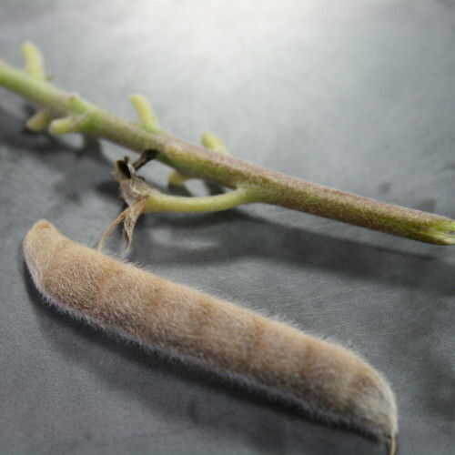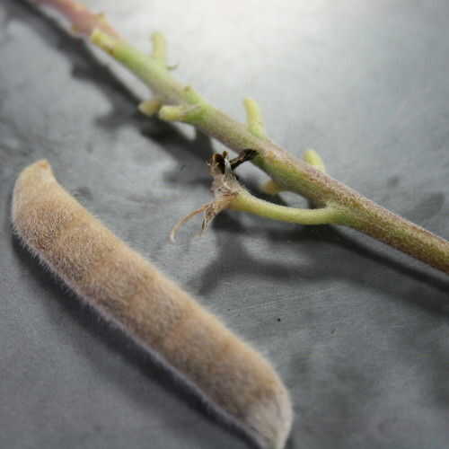 . Tire de la vaina por romperlo parcialmente desde el peciolo y luego tire de la vaina hasta romper un hilo de Unión. Esto inicio una división en el pod y quite de la espiga.