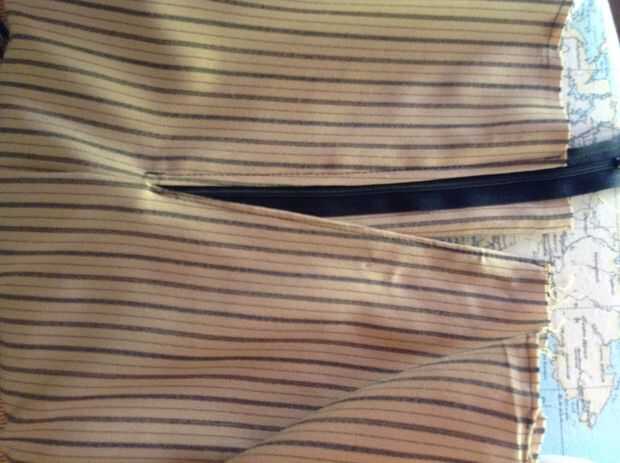 PIN y virar el zip (mirando hacia fuera, cerrado con tirón en la parte superior) con los dientes sólo empujando hacia fuera.