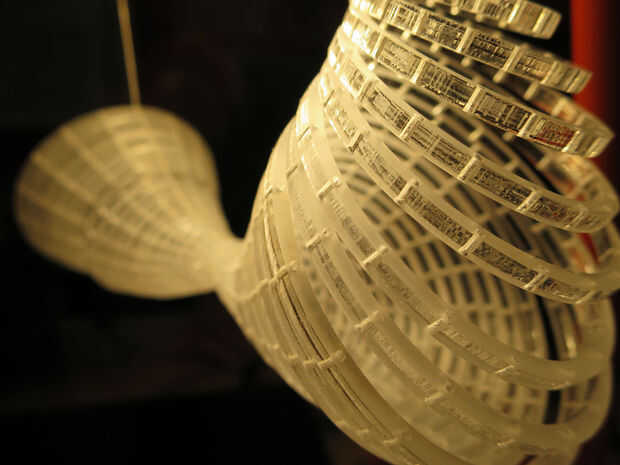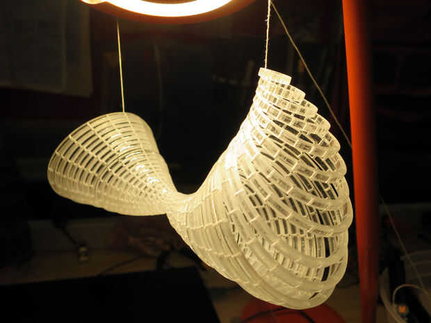 Este Instructable muestra un ejemplo de lasercutting los anillos de acrílico con los agujeros y luego coser éstos junto con hilo de algodón grueso. La tensión del hilo de rosca define la curvatura del objeto.
