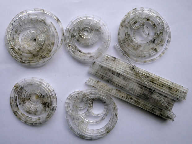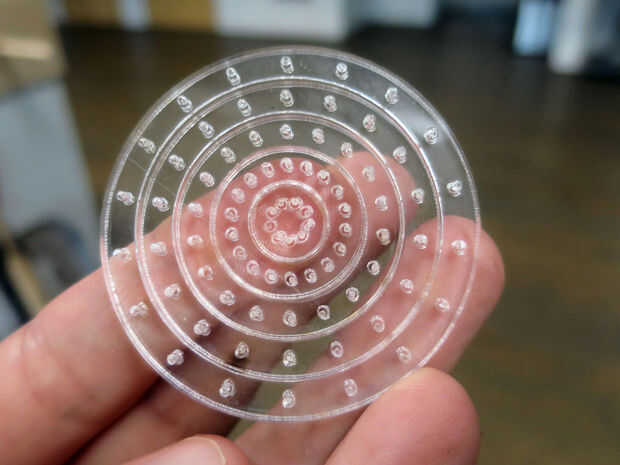 "Comprueba si tu material es sewable" y si no, luego perforar agujeros en él. Agujeros grandes. Y cosa con cuerda.Este colgante estructura de la canasta es una versión escalada-para arriba de coser 3D: anillos con la técnica de cadenas.Este Inst