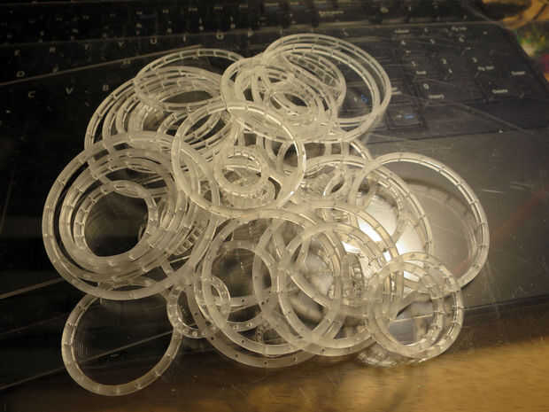 "Comprueba si tu material es sewable" y si no, luego perforar agujeros en él. Agujeros grandes. Y cosa con cuerda.Este colgante estructura de la canasta es una versión escalada-para arriba de coser 3D: anillos con la técnica de cadenas.Este Inst