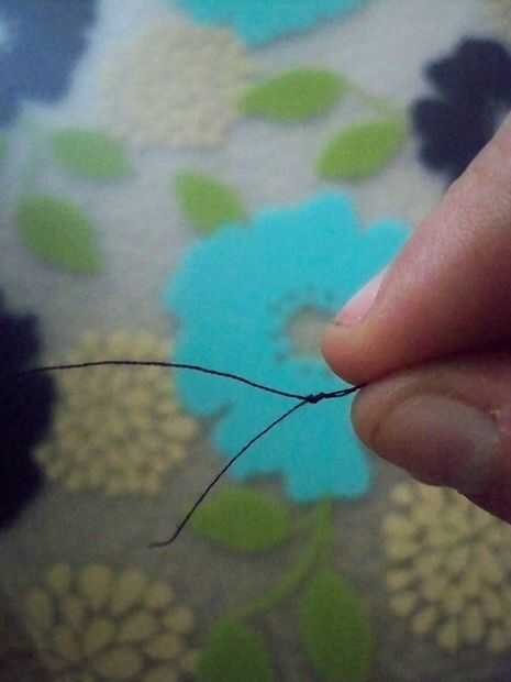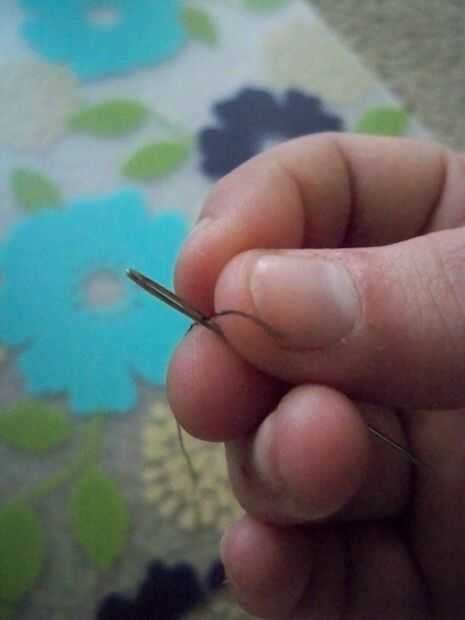 2) doble el hilo de rosca más en la aguja. Cortar.