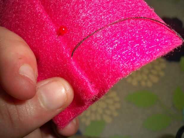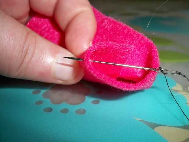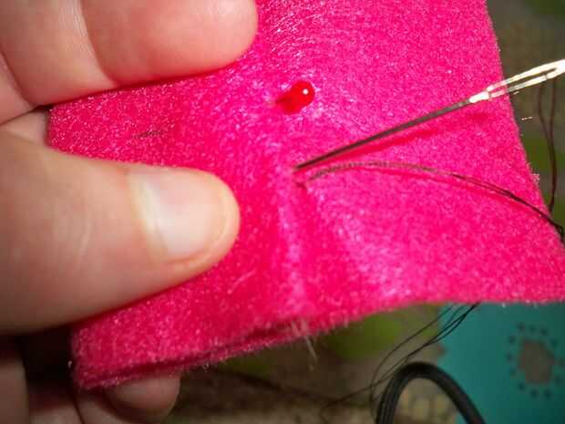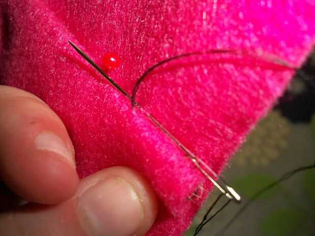 2) justo al lado de donde empezaste, en el otro lado, recoger con la aguja unos hilos en la tela.