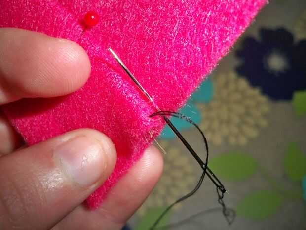 5) justo al lado de donde la aguja sale el dobladillo, recoger unos hilos desde el otro lado.