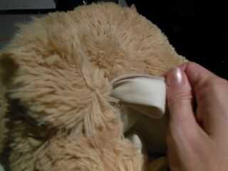 Primero deberá elegir un oso que es suficientemente grande para contener su cobija y el material blando que utilizas para hacer tu bebé colcha. Puede utilizar un oso viejo o comprar uno nuevo si usted está preponiendo esto como un regalo de la ducha de bebé. Asegúrese de que es por lo menos 50cm de alto por lo que habrá suficiente espacio en la cavidad de la bolsa para el tejido.