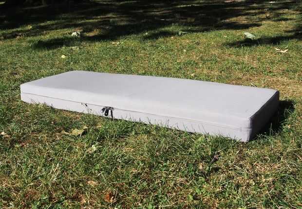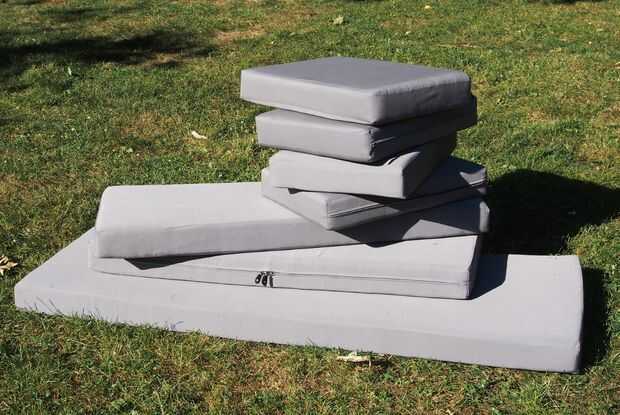 Último paso! Ahora, tenemos que poner la espuma en las cubiertas. Puesto que las cubiertas se hacen un poco más pequeñas, esto es un poco complicado, pero con algo de paciencia, termina por no ser demasiado duro. Intentamos poner las esquinas en el primero y luego ir de allí. Para los cojines pequeños, fui capaz de hacerlo solo, pero los grandes son un poco más difíciles de manejar, así que lo hicimos con una persona comprimiendo la espuma y la otra colocando a la tela en su lugar.