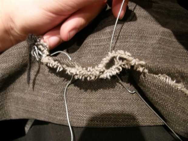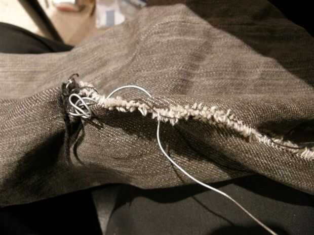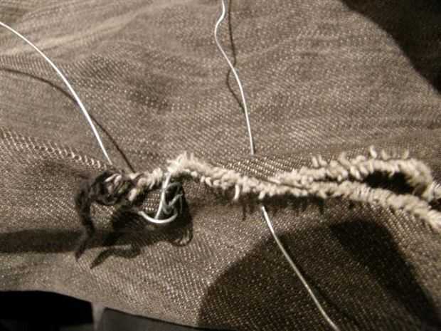 Hacer las puntadas se mueven en tiras diagonal ángulo superficiales para el buen progreso pero mantener fuerza, recuerdan que la tela simplemente conseguir rasgada a través de si también mucha tensión a puntadas individuales, con es por eso que pueden 'descomprimir' si desgarrado.