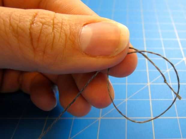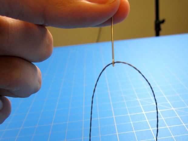 3. Haga un nudo en el hilo en el extremo opuesto de la aguja (nudo tres veces). El propósito de atar un nudo es dejar el hilo de retirar completamente el material.