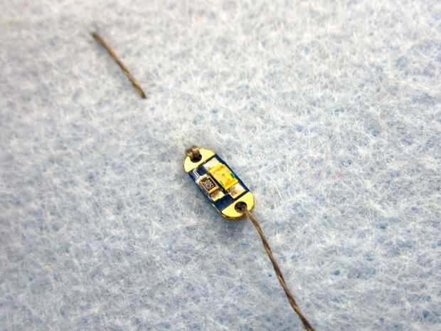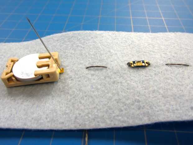 3. cosa de la luz del LED positivo hasta el final positivo de batería titular. Bucle tres veces. En la parte inferior de la pulsera del nudo y corte el hilo.