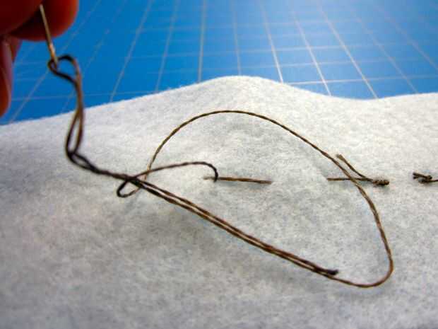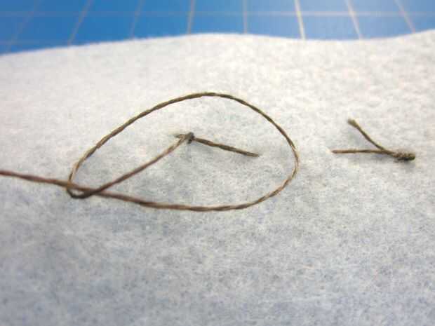 1. Enhebre la aguja con el hilo conductor y hacer un nudo en el lado opuesto de la aguja en el hilo.