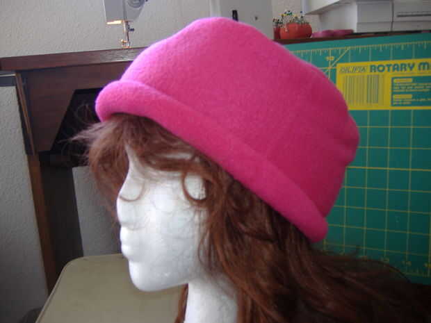 2. pliegue la banda por la mitad con los lados del derecho juntos y coser los extremos con costura de 1/2". Prender la corona a la banda con los lados del derecho juntos y costura con costura de 1/2". Cuando haya terminado, gire a la derecha del sombrero hacia fuera y ruede para arriba el borde inferior. Se hacen con el sombrero!
