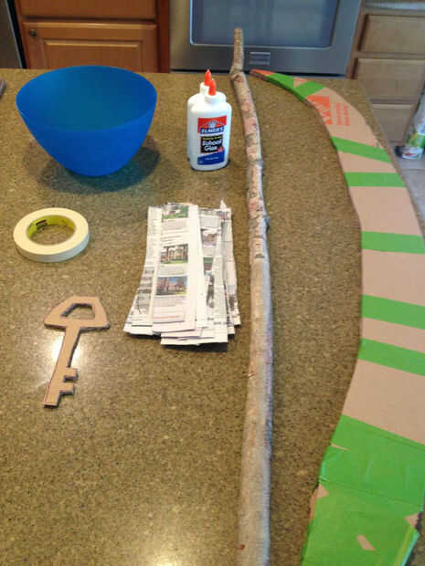 Para la clave y la guadaña tenía que romper el papel maché. Mi hijo insistió en que la guadaña debe ser demasiado grande. No he podido encontrar una tienda comprada, lista hecha guadaña que era bastante grande (créeme, he intentado muy duro).