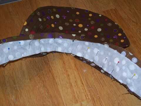 Centro de la Unión corona pieza derecha abajo contra la parte superior de la visera, con el borde desplegado de la pieza de la corona alineada con el interior círculo del borde. Centro de la otra pieza de corona contra el lado inferior del borde de manera similar, con los lados del derecho juntos. El punto central en lugar del PIN. Debe tener un sándwich con los trozos de la corona en el exterior y el borde en el interior.