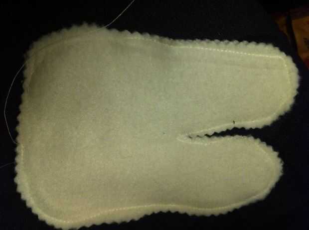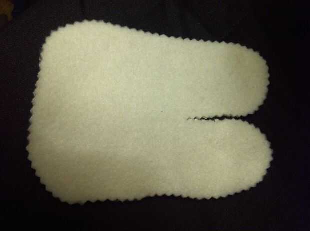 Cortar el cuerpo con vellón blanco. Comience a coser los lados juntos.