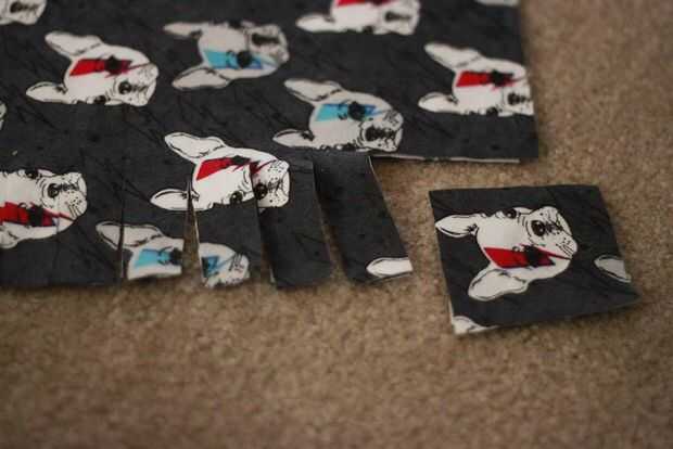 Cortar un cuadrado de 2" de las cuatro esquinas, entonces corte 2" tiras todo el camino alrededor.