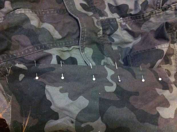 1. corte un cuadro pequeño (1cm de espesor). 2. doblar los dos lados 1cm hacia adentro. 3. perno de los dos lados juntos. 4. coser los dos lados juntos, deje 1cm.