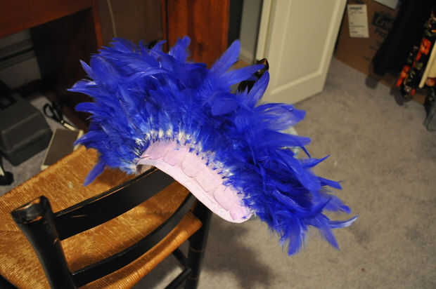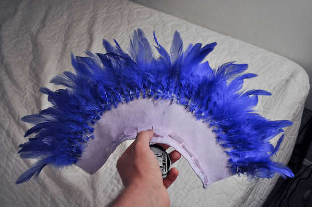 El siguiente paso es simple, largo y desordenado. A partir del pegamento superior en sus plumas largo superestrella. He encontrado que aplicando un poco de pegamento en el extremo de la pluma por inmersión en una gota de pegamento entonces conectarlo al Halcón de superior y acariciando con pegamento un poco más de un cepillo fue el camino a seguir. Poco a poco su forma frente a un lado del halcón de a otro, asegurándose de no dejar grandes espacios visibles entre plumas de trabajo. Una vez seco al tacto (aproximadamente 30 min) repetir el proceso en el otro lado.