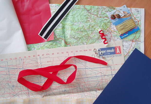 5. ribete de cinta. He utilizado una cinta de tejido de 2 cm (3/4 de pulgada) doblada alrededor del borde. También podría utilizarse bies. La cantidad necesaria será 2 x la longitud del vinilo + 2 x el ancho del vinilo + poquito extra para una superposición y remete en.