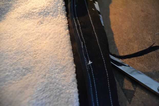 este bolso está forrado con franela pero una tela que no produce pelusa sería mejor para un ordenador portátil. Tuve un gran par de pantalones vaqueros de los hombres con bolsillos en la pierna, así que partí abiertos en la costura en ese par y un pa