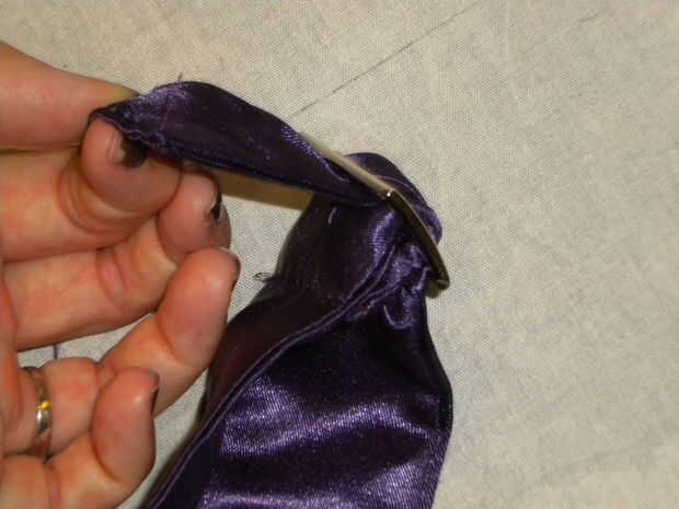 Poner el borde final de la otra mitad de la correa de la hebilla, como si se va a usar.
