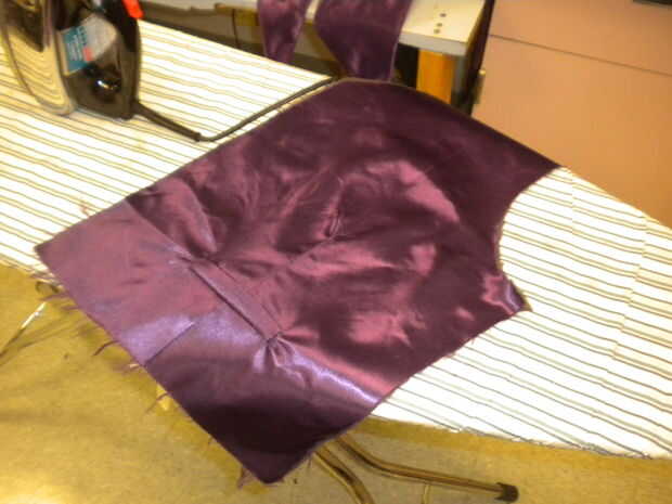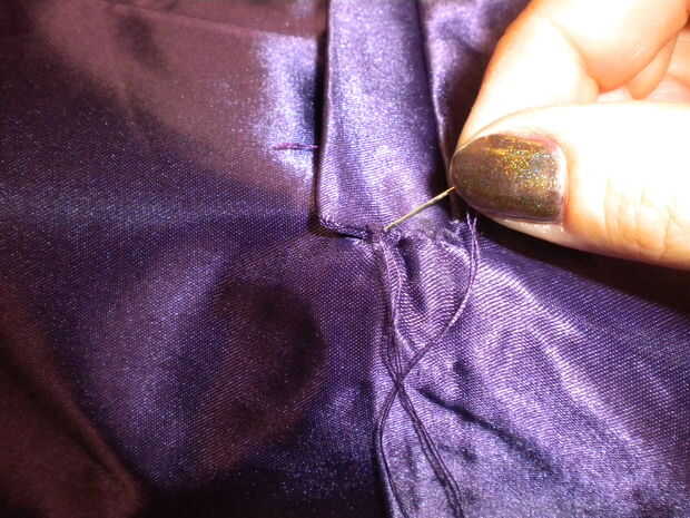 Utilice slipstitch (dobladillo invisible) para coser lados de welt en parte frontal del chaleco. Poco o ningún hilo de rosca debe ser visible.
