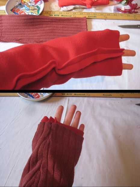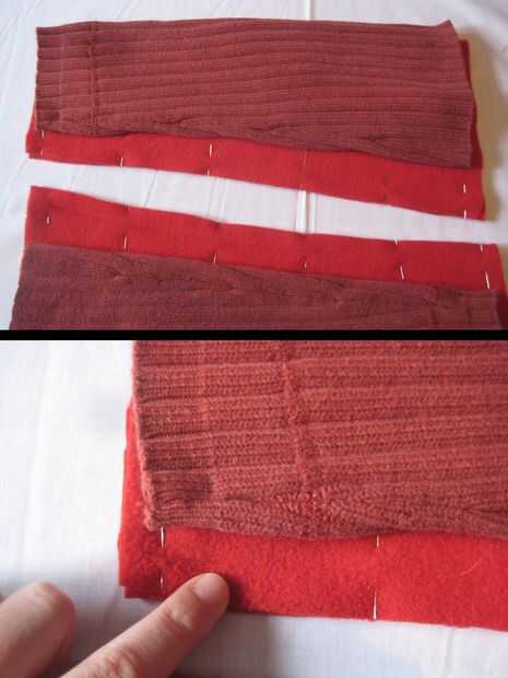 Ahora inserte el forro cosido dentro de la manga del suéter. La forma más sencilla de hacerlo es poner en la guarnición, la costura en la parte exterior, luego pone en la manga del suéter en la guarnición, coincidencia de las costuras. Retire la funda forrada.