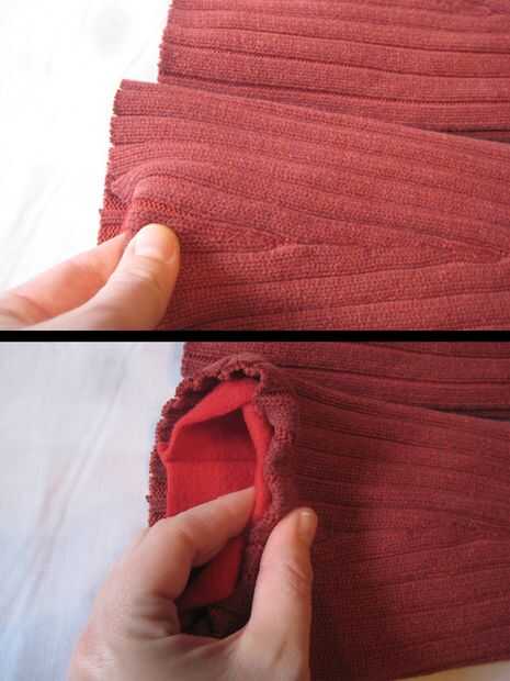 Gire el paño grueso y suave en 1/2 pulgada en el más extremo de la manga hacia el suéter, y la tela en lugar del perno.
