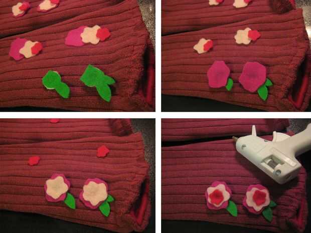 Cortar flores de retazos de fieltro para que coincida con el diseño de tu bufanda y pegamento caliente las piezas en botones.