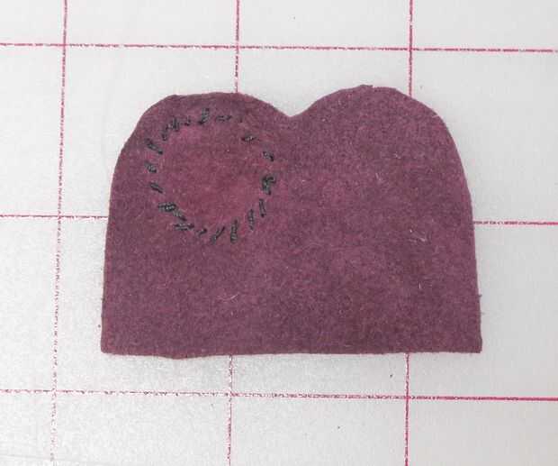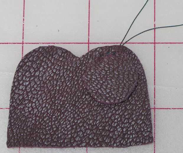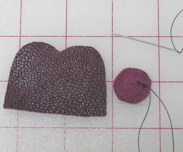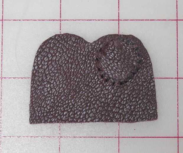 Me decidí a hacer un círculo y cortar uno es menor que el final del dedal (no quería tener que coser a través de tres capas de piel más adelante, así que hice para poder coser en lo malo y dejar espacio para coser el dedal cerrado más adelante). Encontré un carrete de hilo que era el tamaño perfecto (el mismo utiliza al mismo tiempo que mis pompones) yo sólo que remontar.