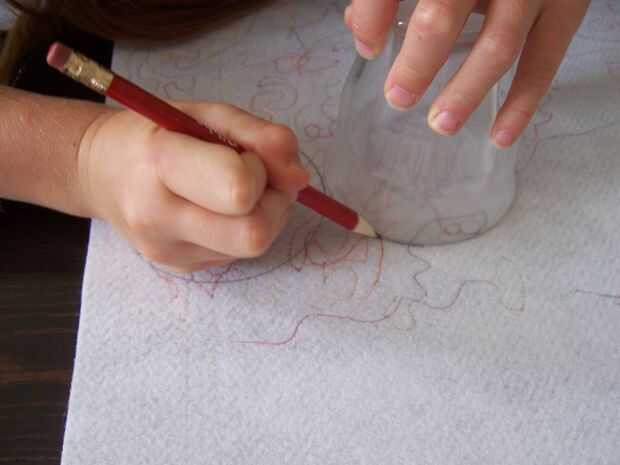Con el objeto redondo (la nuestra es un vaso de jugo) como plantilla, trazar 12 círculos en su interfaz con un lápiz.