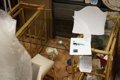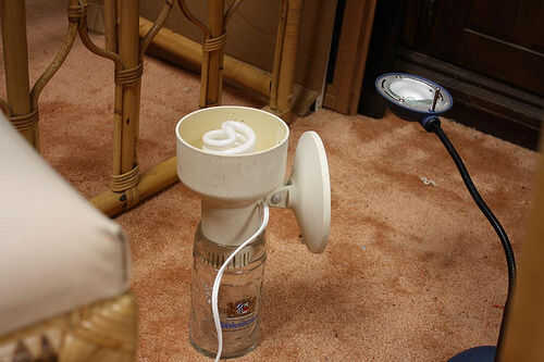 Debajo de la mesa usé dos luces. Para la luz sin el cuello ajustable usé una taza para la lámpara.