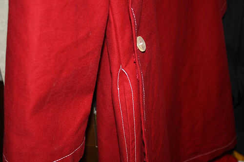 Encuentra la longitud del dobladillo (justo debajo de las rodillas) y donde los costados en caso extremo (decidió poner fin a mi donde mis pantalones sentarse), marca con alfileres. El dobladillo debe curvar hacia arriba suavemente y cumplir con los lados en un ángulo de 90 grados. Perno en su lugar. Hierro plano cuando estés feliz con él.