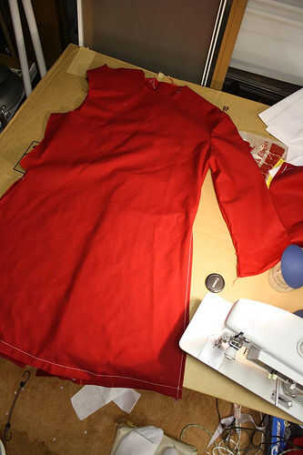 Buscar manga dobladillos y marcar con alfileres. Deje 1 + 1/4 de pulgada exceso, zig-zag/serge final de manga. pliegue en la manga y hierro plano. Top de punto con 1 + 1/8". Que tenía que hacer esto antes de terminar el resto de la costura de la manga porque no tengo una máquina de coser de brazo libre, por lo que no encajaría en el brazalete terminado alrededor de mi máquina de coser.