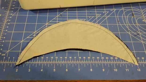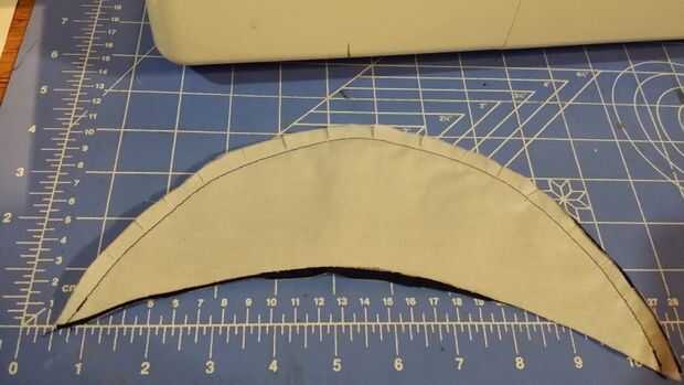 Pinza curva alrededor del borde curvado más grande. Tenga cuidado de no cortar las puntadas que sólo cosido.