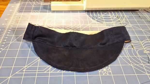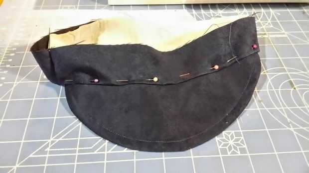 En la tela exterior tire de la banda y aplane así que tiene una superficie lisa. PIN esta abierta de costura y puntada dejar de agrupar más adelante.