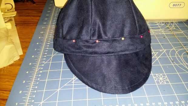 Vuelva al sombrero. Ponga su mano para arriba en la cúpula invertida y poner la guarnición cúpula encima de la tapa y la mano - lados mal juntos. Baje esto y meta dentro de la banda. PIN.