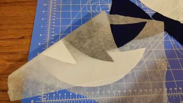 Hay quienes cortan la interfaz para coincidir con la pieza y luego con cuidado le prendieron el trapo para aplicarla, yo no soy ese exacto. Pongo mis piezas en mi lado bueno planchar hacia abajo y entonces endecha un tamaño pieza de entretela sobre todas las piezas. Una vez que la interfaz es simplemente tirar fuera de la tabla de planchado y recortar las piezas a tamaño.