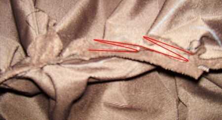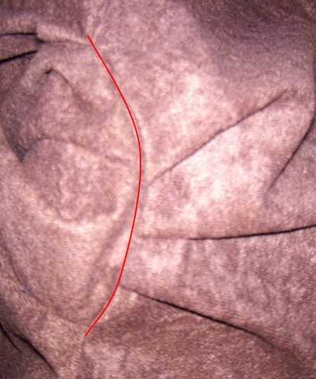 Cuadro #2 es el interior de la costura de la capucha. La línea roja es el doble de s. Mi campana tenía tres (3) pliegues en cada hombro.