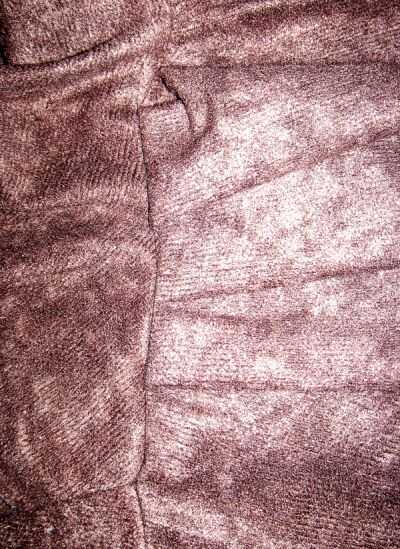 Cuadro #1 muestra la costura del cuello y los pliegues que puse en la campana donde se conecta al manto.,